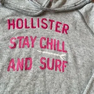 Hollister gray hoodie with pink Stay Chill and Surf. Ideal for everyday comfort.