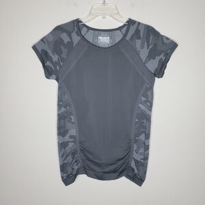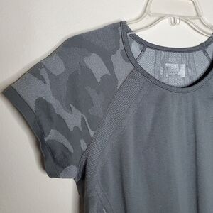 Athleta Fastest Track Gray Camo Print Seamless Short Sleeve Top
