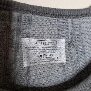 Excellent condition. Gray. Camo print. Ribbed. Ruched at hem. Seamless fabric. Clear grips lined at hemline. Has a lot of stretch.