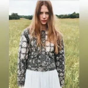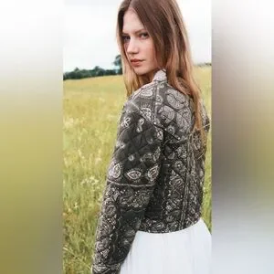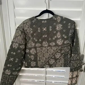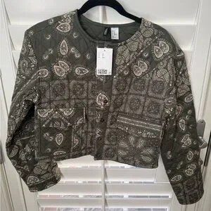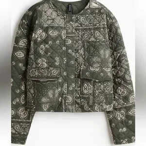 H&M Quilted Cotton Jacket Bandana Print khaki Green/paiseley pattern in size XS