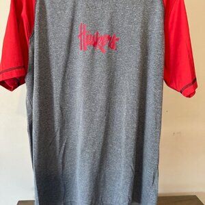 Show your Nebraska Husker team spirit with this men's shirt. Featuring a stylish gray body with vibrant red sleeves, it's perfect for any fan.