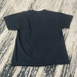 The Y2K Gildan Blood Moon Wolfpack Black Horror T-Shirt in size XL features a graphic print design with a crew neck and short sleeves. Made from black cotton material, this regular fit shirt is ideal for men and is machine washable for easy care. With a nature and horror theme, this all-season t-shirt is perfect for those who appreciate a unique and edgy style. Made by the trusted brand Gildan, this shirt is a must-have for any wardrobe looking to make a statement.