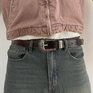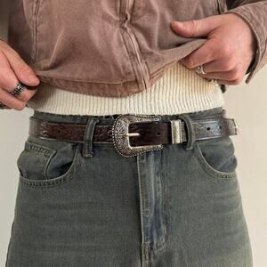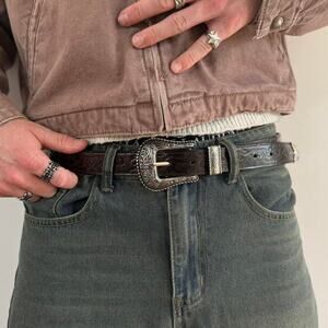 y2k brown leather and silver western cowboy boho belt