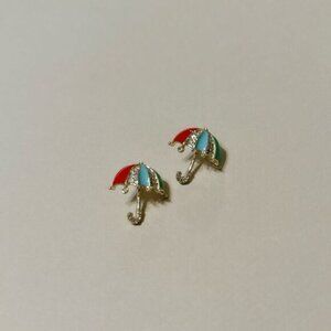 Multicolor enamel diamond decor stud earrings in gold tone hardware
