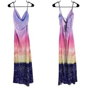Le Superbe NWT Slip Into This Slip Dress Malibu Provence Sky Size S Lace Up Midi