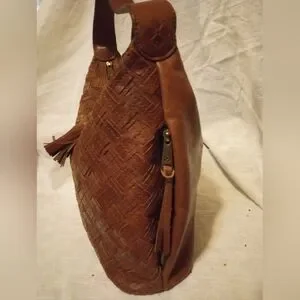 Discover the elegance of Patricia Nash with this brown woven leather bag, perfect for any occasion. Its stylish design and quality craftsmanship make it a must-have accessory. No scratches, scuffs ripes or tears, smoke free home.