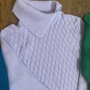 (3) Lands' End cable knit split cowl neck sweaters size M Tall