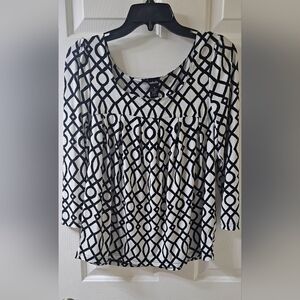 Rafaella Woman's M 3/4 sleeve Geometric Pattern Cream and Black Blouse
