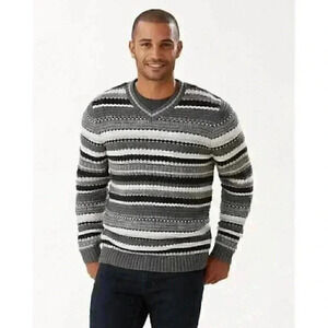 A cool V-neck and confident stripes add dimension to this laid-back sweater. Pair with jeans for a put-together look that you can wear to dinner or the dock.