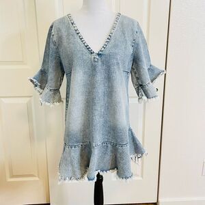 MLM Label Henri Denim Jean Dress Raw Hem V Neck Size XS