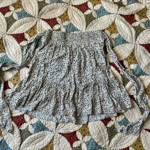 Madewell white, blue, orange, and brown floral knee length skirt with a boho, cottage, and preppy vibe. Stretchy waistband with ties. The floral colors are great for fall. 100% viscose. Size S. Perfect condition, smoke free home.