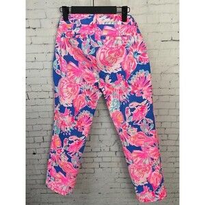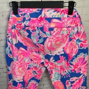 Get ready for the summer season with these beautiful Lilly Pulitzer Sadie Crop pants! Featuring a Bennett Blue Bay Dreamin Chino design, these pants are perfect for any occasion whether it's a travel adventure, party, or casual day out. The pants come in size 6 and have a mid-rise fit with a flat front and skinny leg style.