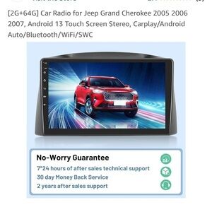 This car radio for Jeep Grand Cherokee 2005 2006 2007. (Our Grand Cherokee car stereo has the right wiring harness and Canbus to support the original steering wheel controls,This upgrade Jeep Grand Cherokee stereo comes with a 4-core CPU, 2GB RAM + 64GB ROM and the latest Android 13 system, making the Jeep Grand Cherokee radio performance even better. 2.5D tempered glass, 10.1 inch 1080P HD larger and clearer screen, give you wonderful visual experience.This Jeep Grand Cherokee radio is compatible with Wired/Wireless Carplay and Android Auto, support for Voice Control makes it easier to use phone functions, including music, GPS navigation, calls, notifications, messages and more, while you focus on the road.EQ audio makes the playback of the played songs highly similar to the original sound, which can perfectly reproduce the voice of your favorite singer. The Jeep Grand Cherokee car radio has GPS navigation that allows you to use online/offline maps. Through WiFi/Hotspot connection, you can also download apps from play store, such as YouTube, Tiktok, Spotify, etc.①Reversing Assistance: You can connect the AHD reversing camera, and it will provide you with assistance in reversing. ②With the steering wheel controls function, you can make calls, adjust the volume or change songs more safely. ③And 1080P Video Player, FM RDS Radio, Split Screen, Bluetooth Hands-Free Calling