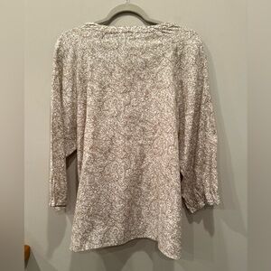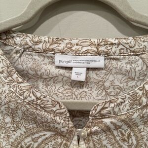 Pure Jill Organic Cotton Beige Paisley Women's Blouse Top Button Detail Sz L