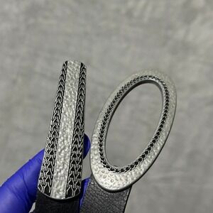 Chicos Black Genuine Leather Belt Oval Silver Tone Chain Detail Buckle M/L