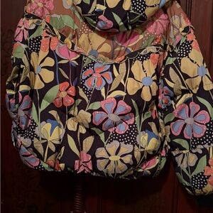 Brighten your look with this CeliaB puffer. Features bold floral patterns. Perfect for a stylish, warm outfit.