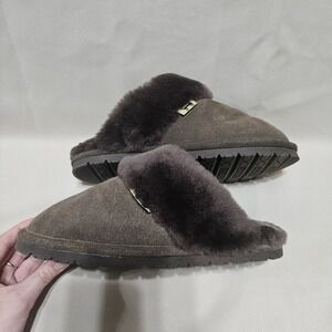 Wild Woolies Genuine Sheepskin Lined Slippers Womens Size 7 Brown Cow Suede