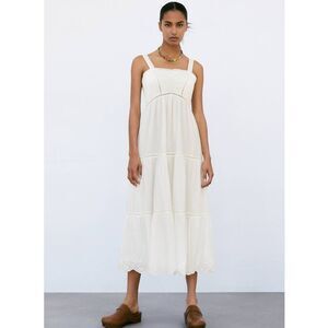 ZARA PINTUCK MIDI DRESS ECRU NEW