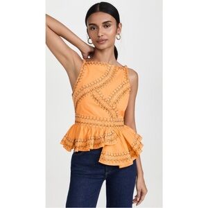 Ulla Johnson Pilar Peplum Top Papaya Orange Size 6