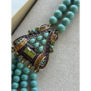 HEIDI DAUS 5 Strand Turquoise & Multi Color Crystal Necklace Adjustable STUNNING