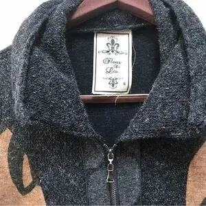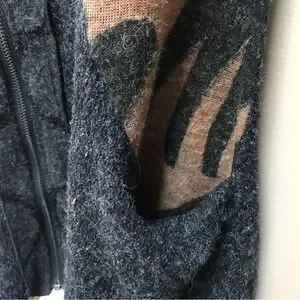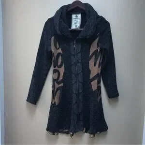 Vintage Concept Full Zip Knit Black Brown Ruffle Pocket Cardigan Sweater Small