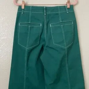 Anthropologie Maeve Pants Womens 27 Green Delaney Wide Leg Stitched High Rise