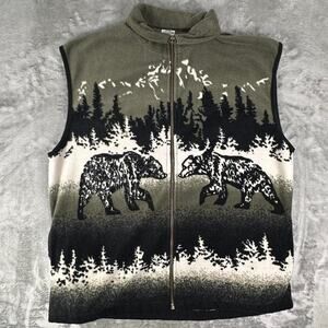 Vintage 90’s Canada Wildlife Green/Black AOP Bears In The Wild Full-zip Sweater Vest Size XL