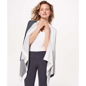 a rare, sought-after layering piece perfect for travel, yoga warmups, and everyday comfort. This lightweight open-front wrap features a draped silhouette, soft breathable fabric, and a modern colorblock design in versatile neutral tones. Flattering flowy fit works beautifully over tanks, tees, and leggings. Ideal for studio-to-street styling, casual weekends, or cozy office layers. Hard-to-find Lulu classic with effortless movement and premium quality. Elevate your athleisure wardrobe with this timeless, easy-to-style wrap.