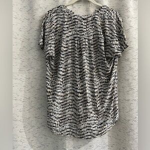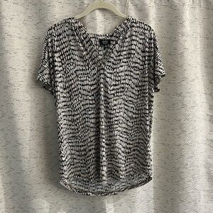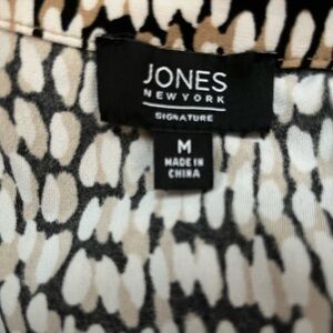 Jones New York Black-Tan-White V Neck Short Sleeve Blouse