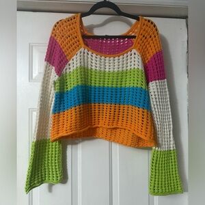 🌈 Y2K Colorblock Crochet Sweater Wild Fable M | Festival Knit Top