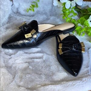 Liz Claiborne Black Croc Mules with Gold Accents