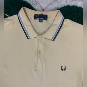 Classic Fred Perry polo in light yellow. Features signature logo on chest. Ideal for casual wear.