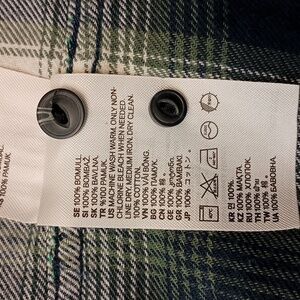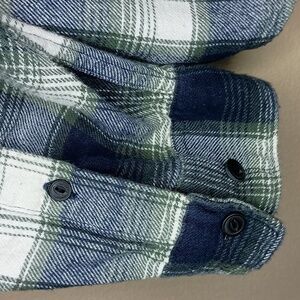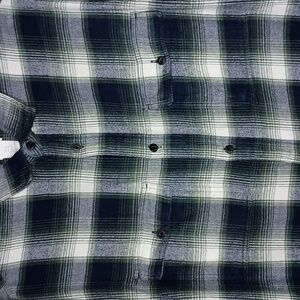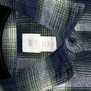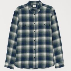 H&M 100% Cotton Flannel Button Up Regular Fit Shirt with Button Flap Chest Pockets, Long Sleeves with Adjustable Buttoning on Cuffs, and a Rounded Hem. Blue, Green and White Checked Print. Excellent Like New Condition.