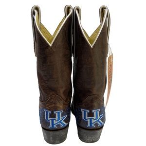 Whether tailgating at the big game or just adding flair to your outfit, show your UK school spirit with these boots. Constructed from the highest quality distressed leather, these handcrafted boots are sure to provide quality and comfort for countless championship seasons to come.