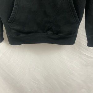 This Volcom hoodie is the perfect addition to any skate or surf lover's wardrobe. With a solid black color and big logo accent, it features a drawstring closure, crew neck, and long sleeves with a hooded design. The size small sweatshirt is made with regular fit and is suitable for all seasons, including winter, summer, fall, and spring.