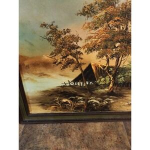 Vintage Original Oil On Canvas Painting Cabin On Lake STUNNING Landscape Signed