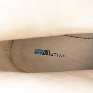 Matiko Mylvia tan suede leather ankle boots with a front zip, soft lining, and a casual modern vibe.