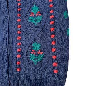 Vintage, cardigan, sweater, embroidered, holiday, Christmas, winter, knit, Cableknit