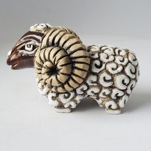Artesania Rinconada Hand Carved Pottery Ram Sheep Figurine made in Uruguay Vtg