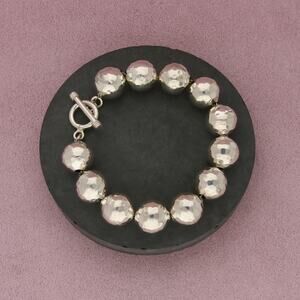 sterling silver hammered bead chain toggle bracelet size 6.75in