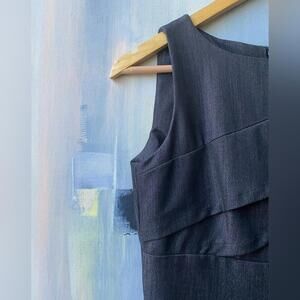 This beautiful, sophisticated black mini dress by Calvin Klein features an asymmetrical tiered design that adds a modern twist to the classic sheath silhouette, slim fit and hits just above the knee. Sleeveless style with a scoop neckline makes it perfect for both work and cocktail occasions, offering a chic and versatile option for your wardrobe.