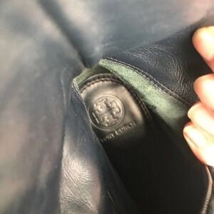 Tory Burch Cassidy Black and Blue Suede Floral Embroidered Lace Up Booties 8.5