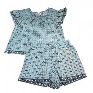 Max Studio Turqouise Shorts And Short Sleeve Top Set Womens Size XL