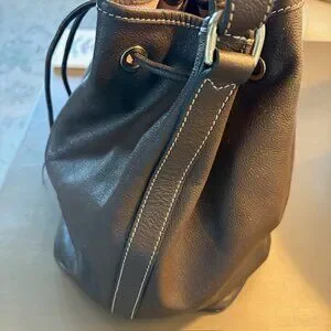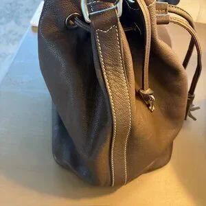 Genuine leather purse, Brown leather and grommets, Dooney & Bourke bucket bag purse, drawstring bucket bag, Pebble grain brown leather bucket bag