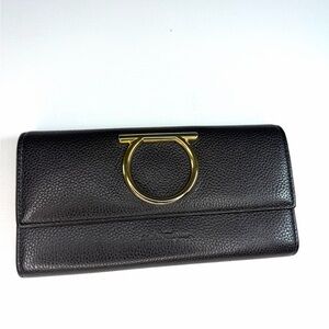 Salvatore Ferragamo Calf Gancini Long Wallet 22D706 Black