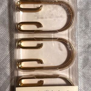 Shower hooks- Rust resistant - 12 pieces - approx. 3 inches tall and 1.5 inches wide- Antique brass finish but looks more gold (originally $9.99)
