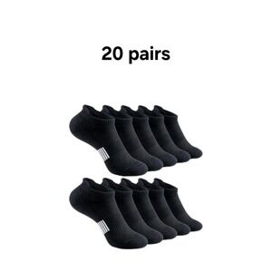 20 Pairs Compression Ankle Socks, Black, Fits Mens 7 - 10, Womans 8 - 12