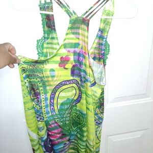 ✨Spode Vibrant Green and Multicolor Tank Top Size M
