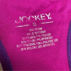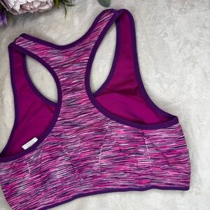 Experience comfort and style with the Jockey Women's Sports Bra. Featuring a vibrant pink, purple, and white space dye print, this bra offers both support and a fashionable look.