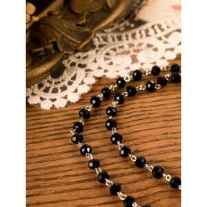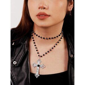 Features: This Gothic-style layered necklace features a striking cross pendant made of black onyx, measuring 2 inches wide and nearly 3 inches tall. It has two beaded chains, one 12.9 inches long and the other 17 inches, with a 2-inch extender for adjustable fit. Crafted from durable zinc alloy and stainless steel, with a lobster clasp for easy wear.